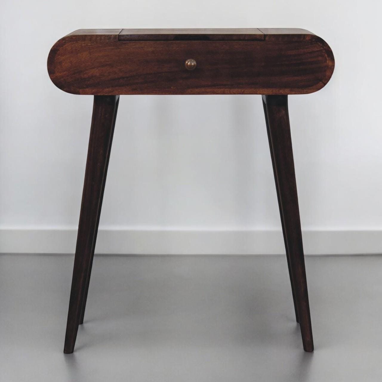 Mini California Walnut Dressing Table - Solid Mango Wood Vanity | Foldable Mirror | Scandinavian Makeup Table